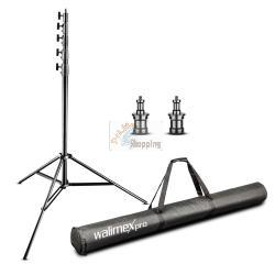 Treppiede per lampada Jumbo Walimex, 600 cm AIR Il treppiede per lampada Jumbo con una max. L'altezza di 730 cm è l'assistente ideale quando si punta in alto. Se i comuni treppiedi non sono abbastanza alti per te, ad esempio quando vuoi illuminare mobili o automobili dall'alto, puoi estendere il treppiede per lampada Walimex su 5 sezioni. È possibile montare flash da studio o riflettori fino a un peso di ca. 15 kg a questo treppiede. È anche l'assistente ideale per banner pubblicitari, bandiere e così via. L'ammortizzazione ad aria offre comfort e sicurezza durante l'abbassamento dei singoli elementi del supporto. Con l'attacco standard da 5 / 8 pollici, il treppiede è adatto a tutte le comuni luci e flash da studio. Suggerimento: ad un'altezza di 3 metri o più, utilizzare pesi per treppiede, sacchi di sabbia o qualcosa di simile per proteggere il treppiede da raffiche di vento e oscillazioni. Caratteristiche: