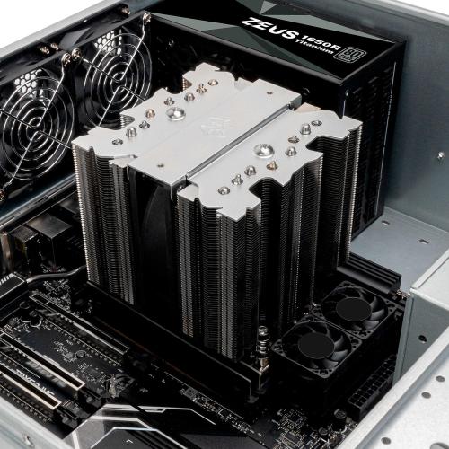 IlSilverStone SST-XE02-4677Bè un dispositivo di raffreddamento della CPU progettato per raffreddare in modo ottimale server e workstation con un fattore di forma 4U. Il suo design a doppia torre, combinato con otto tubi di calore da 6 mm, garantisce un raffreddamento efficiente per il tuo server rack. Le alette di raffreddamento in alluminio garantiscono una dissipazione del calore ottimale. Per mantenere il tuo server o workstation il più esente possibile da manutenzione, SilverStone punta su una ventola con doppio cuscinetto a sfera da 120 mm con un'elevata aspettativa di vita. |
