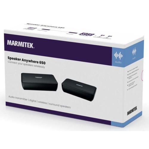 Marmitek Speaker Anywhere 650 - Connessione altoparlante wirelessCon Speaker Anywhere 650 è possibile collegare in modalità wireless gli altoparlanti (posteriori) di un set surround. Niente più cavi audio sciolti nella tua stanza! Speaker Anywhere 650 offre una trasmissione digitale che garantisce audio ad alta risoluzione. Il set può essere ampliato con un massimo di 2 ricevitori extra (venduti separatamente) in modo da poter inviare il suono anche agli altoparlanti in un'altra stanza, se lo desideri. È anche possibile utilizzare un ricevitore aggiuntivo per collegare in modalità wireless entrambi gli altoparlanti al ricevitore/amplificatore AV senza la necessità di un cavo tra i due altoparlanti. Utilizza più set in una stanza per rendere wireless anche i tuoi altoparlanti anteriori!
