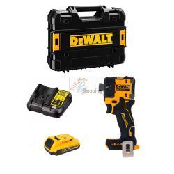 | -Avvitatore ad Impulsi DeWALT DCF870 - Gancio per cintura -Porta bit magnetico - 1 Batterie 18V 2,0 Ah - Caricabatterie DCB1104 -Valigetta TSTAK II |