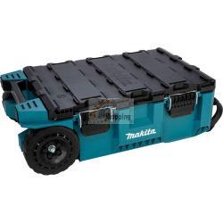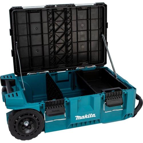 Makita P-91001 MAKTRAK Trolley cassetta degli attrezzi L: mobile, estremamente resistente e resistente. perfettamente organizzatoLa cassetta degli attrezzi MAKTRAK Trolley L è la soluzione più grande e mobile del sistema MAKTRAK: con un volume di 81,9 litri, una capacità di carico di 113 kg e ruote fuoristrada da 23 cm per l'uso in cantiere, in officina o in viaggio. È particolarmente facile da caricare e scaricare, anche da furgoni o camion, grazie al design orizzontale, al coperchio a doppia piegatura e alla maniglia Gecko Grip. La robusta struttura in copolimero, l'espandibilità modulare e l'intelligente organizzazione interna lo rendono il compagno ideale per i professionisti con molte attrezzature. È impilabile, chiudibile in modo sicuro e offre spazio per utensili lunghi, batterie, caricabatterie e accessori. Caratteristiche: