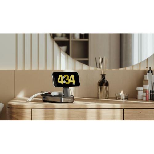 Dettagli sofisticati completano il design funzionale. Il cavo USB-C integrato e il caricabatterie pieghevole per l'Apple Watch possono essere riposti nell'alloggiamento per risparmiare spazio. Quest'ultimo supporta la modalità comodino e trasforma il power bank in una pratica stazione sveglia. Inoltre, la superficie di ricarica Qi2 può essere utilizzata con iPhone compatibili con MagSafe e consente una connessione stabile durante la ricarica grazie alla funzione snap-on magnetico. Un display LED integrato fornisce in ogni momento informazioni sullo stato della batteria. Con una capacità di 21.000 mAh, il power bank è omologato anche per i viaggi aerei nel bagaglio a mano.