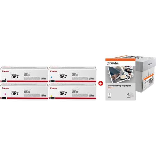 ORIGINALE Canon Value Pack nero / ciano / magenta / giallo / Bianco 067 MCVP + Prindo Universal Papier 2500 Blatt ~5100 Seiten mod. 067 MCVP + Prindo Universal Papier 2500 Blatt EAN 2200000054166