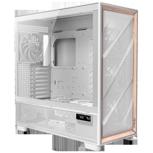 La combinazione di parte anteriore in rete e dettagli in legno di betulla conferisce al case un aspetto moderno e sofisticato. Il pannello laterale in vetro temperato spesso 4 mm offre una visione chiara dei componenti installati e sottolinea il design di alta qualità.