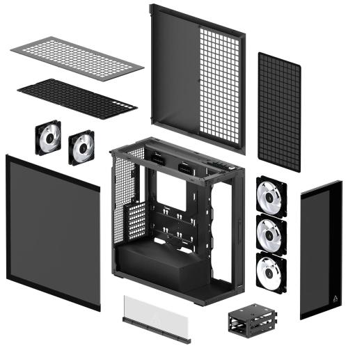 Per raffreddare l'hardware con qualsiasi carico,ARCTIC Xtender può ospitare fino a otto ventolecontemporaneamente. La parte superiore supporta tre ventole da 120 mm o 140 mm. Il lato supporta anche tre ventole da 120 mm o 140 mm. Inoltre, la parte posteriore supporta l'installazione di due ventole da 120 mm. Cinque ventole ARGB sono già installate: due ventole ARCTIC P12 Pro nella parte posteriore e tre ventole ARCTIC P14 Reverse sul lato. Se si preferisce installare il raffreddamento ad acqua, sia che si tratti di un raffreddatore ad acqua AiO o di un circuito di raffreddamento ad acqua personalizzato,è possibile installare anche radiatori. La parte superiore e laterale supportano radiatori fino a 360 o 420 mm. Installazione dell'hardwareIl case offre molto spazio per un potente hardware di gioco. Supporta l'installazione dischede grafiche di grandi dimensioni fino a 482 mm. Tieni presente che se viene utilizzato un radiatore laterale, la dimensione della GPU è limitata a 337 mm. Sono supportate schede madri fino alfattore di forma E-ATX. Ilradiatore della CPU non deve superare un'altezza di 171 mm. Per memorizzare programmi e giochi è possibile installare un totale di sei unità: sei SSD da 2,5 pollici e due HDD da 3,5 pollici.  |