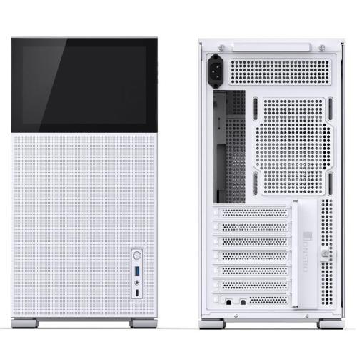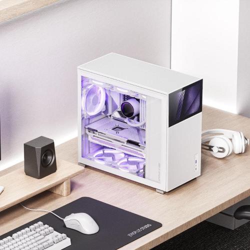 The Jonsbo is available in several versions, one with and one without mesh and even with a large TFT-LCD at the front, on which you can display system information or animated screensavers. No matter what you prefer, with the Jonsbo D41 you can create your perfect gaming setup. This version in white has a mesh front panel for improved airflow.
