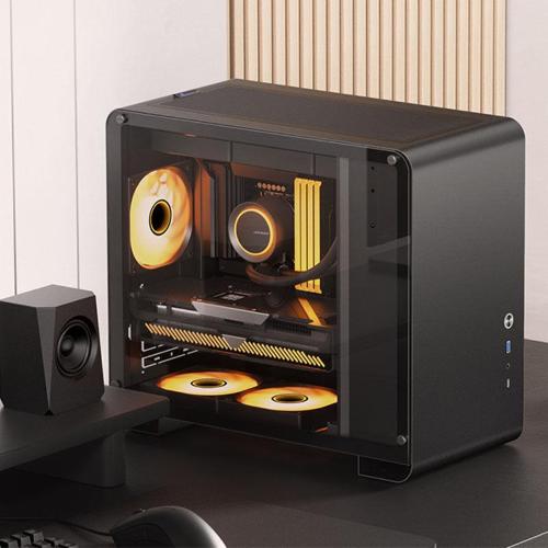 Le caratteristiche del case micro-ATX Jonsbo U4 Mini in dettaglioEsternamente, ilU4 MinidiJonsboconvince con il suo design sobrio e chiaro, l'elegante pannello laterale in vetro temperato e la sua lavorazione impeccabile. Il case micro-ATX offre un interruttore di alimentazione sul lato destro,una porta USB-C 3.1 e una porta USB 3.0, nonché un jack audio combinato. Il case micro-ATX offre molto spazio per hardware potente e lo mette in mostra in modo efficace. Con dimensioni di222 x 385 x 440 millimetri, l'U4 Mini di Jonsboè ancora abbastanza compatto, ma può ospitare hardware di gioco di dimensioni standard all'interno. Oltre a unascheda madre mini-ITX e micro-ATXc'è spazio anche perschede grafiche lunghe fino a 420 millimetri. Con quattro slot c'è abbastanza spazio per schede di espansione come schede di acquisizione o schede audio. L'U4 Minipuò ospitare fino aun'unità da 2,5 pollici e una da 3,5 polliciin totale. Per il raffreddamento è possibile montare due ventole da 140 mm o tre da 120 mm nella parte inferiore e una ventola da 120 mm nella parte posteriore. Tre ventole aggiuntive da 120 mm possono essere inserite nella parte superiore dell'elegante case e migliorare l'effetto camino naturale, a vantaggio del raffreddamento di tutti i componenti. L'alimentatore è alloggiato nella parte anteriore del case e può esserelungo fino a 220 mm. C'è spazio sufficiente di 165 mm per i comuni dispositivi di raffreddamento della CPU.  |