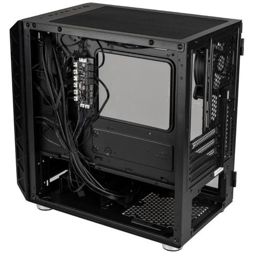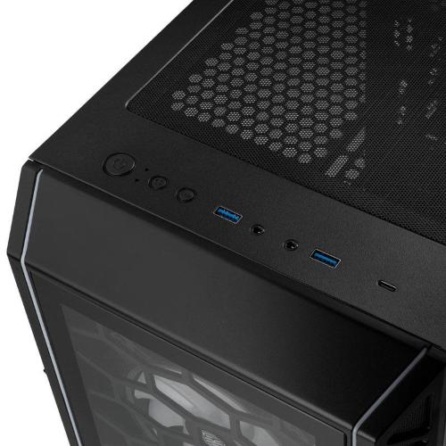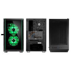 - Glass front panel with 2 x pre-installed ARGB LED PWM Fans