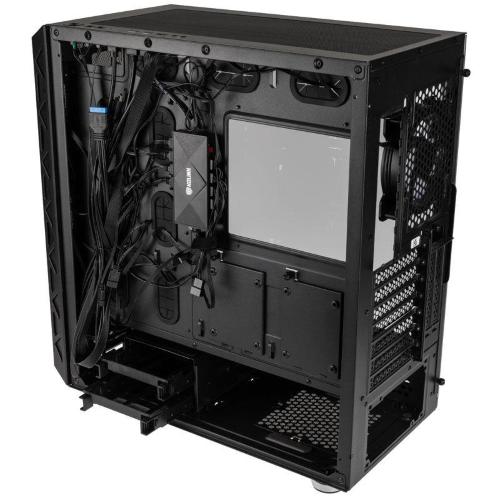Kolink Citadel Mesh ATX ARGB midi tower offers numerous openings for cable management. The standard ATX power supply sits on top of a