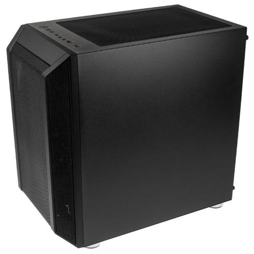 The interior comes entirely in black, with a PSU shroud that only adds to the sleek and unobtrusive look. Behind the shroud is where users will find space for a pair of 3.5" HDD's in the HDD cage provided. Alternatively, 2.5" SSD's can be installed here, or next to the motherboard. The motherboard tray and PSU shroud both offer numerous openings for optimum cable management, with up to 24mm cable management space. Underneath the case is a removable dust filter suitable for an ATX PSU up to 200mm.