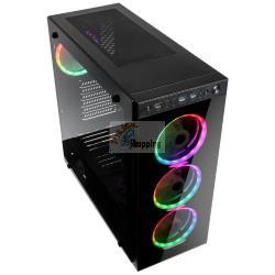 four RGB fans and a remote control with a tempered glass front as well as a large side panel. Alongside its functionality, the case also offers elegant design and a variety of options for installing water cooling, storage devices and cable management. Up to