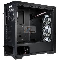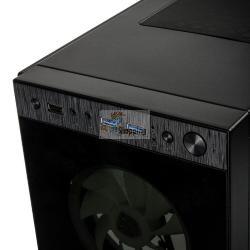 removable (tool-free) tempered glass side panel and another on the front of the case. Side-facing air inlets contribute significantly to the case's excellent airflow. The