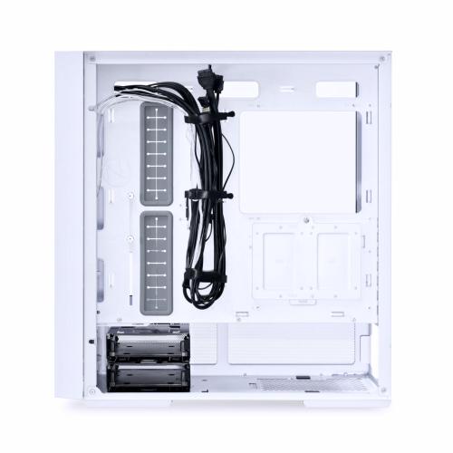 L'interno bianco offre ampio spazio per hardware ad alte prestazioni, comeschede madri ATXe potenti schede grafiche per giochifino a 386 mm di lunghezza. Sul retro del vassoio della scheda madre possono essere montati due SSD da 2,5 pollici o un HDD da 3,5 pollici.