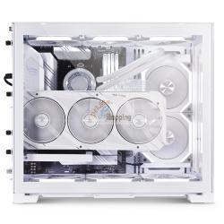 O11 Dynamic Mini Snow Edition comes with a stylish combination of aluminium and tempered glass. It features an all white design with silver screws and light grey rubber grommets.
