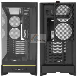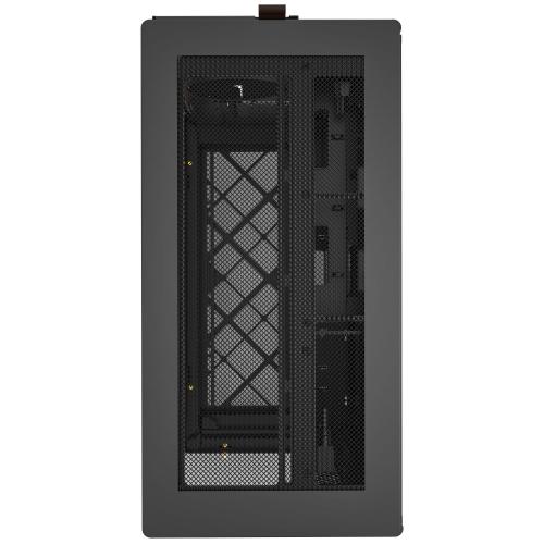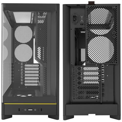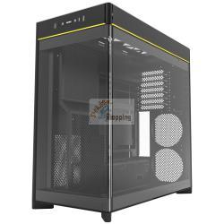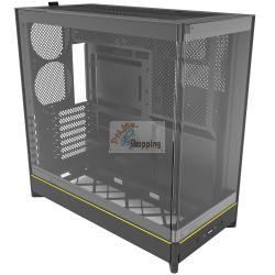 HS02 offre un layout utilizzabile su due lati con una finestra panoramica in vetro curvo. È una veravetrinaper gli appassionati che vogliono mostrare perfettamente il proprio setup. Il design modulare ti consente di installare il pannello laterale in vetro dal lato sinistro a quello destro e i grandi elementi metallici offrono la massima visibilità del tuo hardware, rendendo il tuo sistema un vero e proprio eye-catcher.