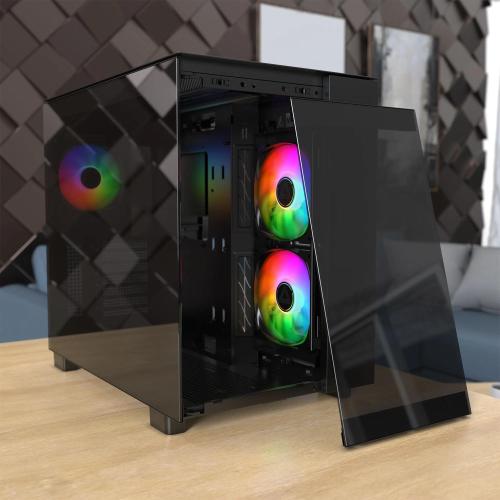 - Due ventole ARGB PWM da 140 mm e una da 120 mm preinstallate, per un totale di otto possibili