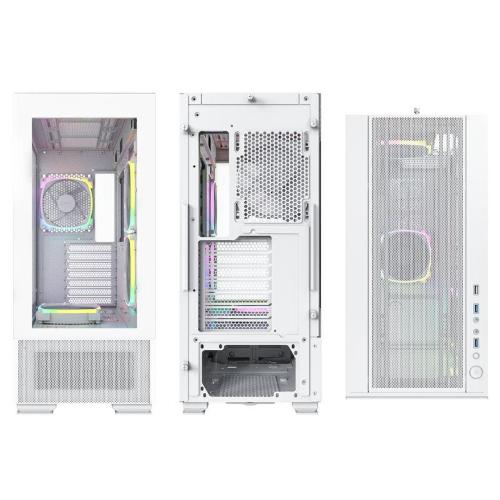 Enjoy the Unobstructed ViewsThanks to the integrated front and side panel, users can see their whole interior at first sight.The fine mesh that covers from the underside of the front panel extends to the PSU chamber with pre-installed ARGB fans that enhances the beauty of this masterpiece.