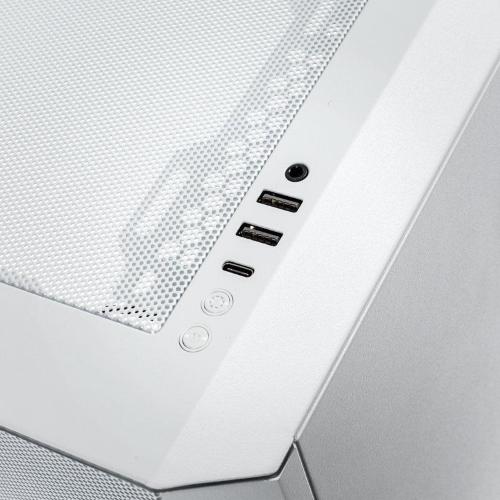 The Eclipse G500A is completely made of steel. The side panel made of tempered glass provides a good view of the components inside. The I/O panel features a power button, HD audio and microphone port, as well as two USB 3.1 Type-C ports and one USB 3.0 Type-A port for faster file transfer. In addition, there are two buttons to control the ARGB lighting. You can use them to set the mode and colour.