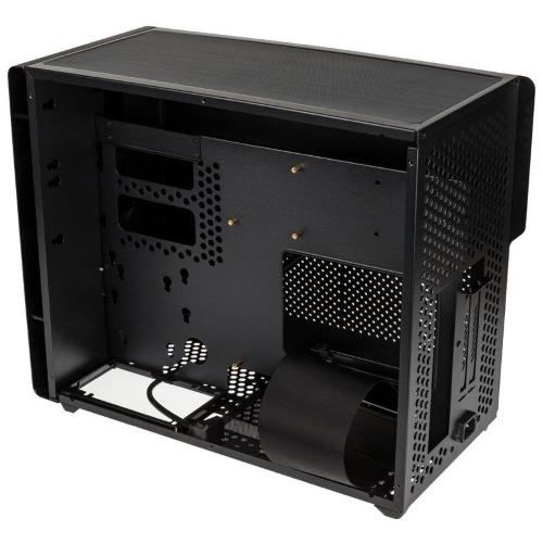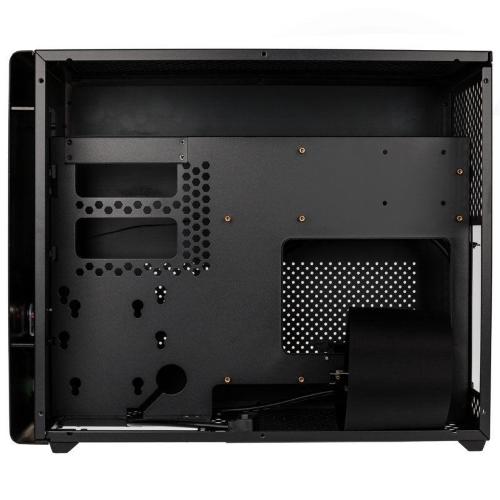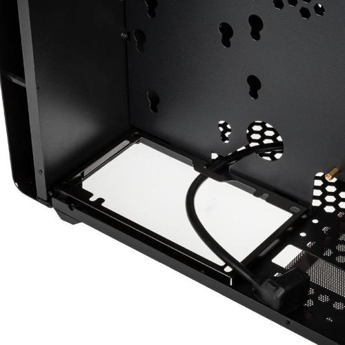 The clever yet minimalist design of the case also ensures that airflow moves from the bottom to the top with minimal obstruction. The bottom of the case allows for an optional 120-, 140-, or even 200 mm fan to intake fresh air. This air is pushed out by up to