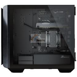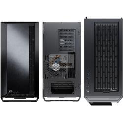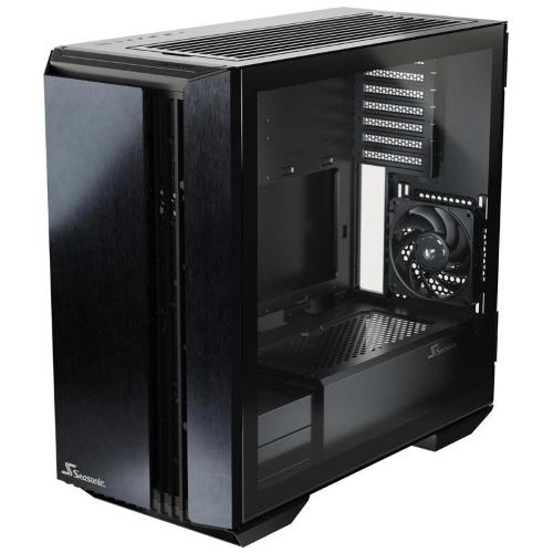 La serie Seasonic SYNCRO Q7 all'avanguardia è uno chassis ATX mid-tower con corpo in alluminio e un pannello in vetro temperato da un lato e il modulo Seasonic SYNCRO CONNECT* dall'altro. Questa configurazione può ospitare hardware potente e fornisce opzioni versatili di raffreddamento e ventilazione. Il modulo SYNCRO CONNECT funziona come un hub di gestione dei cavi, al quale i componenti sono collegati direttamente con cavi generalmente più corti. Questa configurazione semplifica l'instradamento dei cavi e consente un aspetto pulito su entrambi i lati del case.