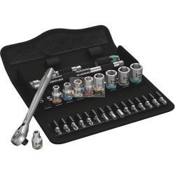 Disposizione del set incredibilmente compatta con molti strumenti in uno spazio minimo: scatole tessili uniche, molto robuste e durevoli. Possono essere posizionati in posizione verticale per riporli in modo ordinato sullo scaffale dell'officina. Ulteriore protezione della superficie grazie al materiale esterno in tessuto. Peso e volume ridotti per una mobilità più semplice. Trova-utensili "Take it easy" con codice colore in base alle taglie. Set di cricchetti in metallo Zyklop, 28 pz.