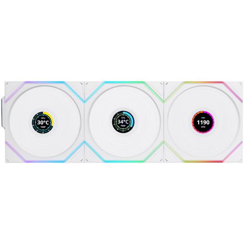 Il display LCD wireless UNI FAN TL di Lian Li fornisce una soluzione efficiente per la gestione dei cavi nel PC. Grazie al controllo wireless a 2,4 GHz per gli effetti di luce e la velocità della ventola, avrai bisogno di molti meno cavi, semplificando la creazione del tuo sistema. La ventola offre effetti di illuminazione a doppia zona, è facile da installare e dispone di un LCD integrato per la visualizzazione di informazioni di sistema o grafica personalizzata.