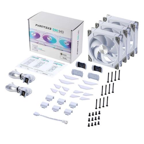 Leventole Phanteks D30-140 PWM D-RGBsono progettate per fornire un flusso d'aria e una pressione statica elevati. Grazie alla profondità di 30 mm, al potente motore idrodinamico PWM e alle pale della ventola aerodinamiche, possono essere utilizzati per raffreddare il case con maglie restrittive e filtri antipolvere o sui radiatori. Inoltre, offrono ampie funzionalità di collegamento a margherita senza ingombro di cavi. Puoi collegarne fino a quattro insieme e collegarli alla scheda madre per segnali PWM e ARGB con un solo cavo.