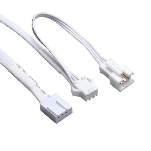 Le ventole possono essere collegate con due clip sui lati, uno dei quali trasmette la potenza dalla prima ventola a un totale di quattro. Ciò riduce il disordine dei cavi poiché solo la prima ventola deve essere collegata al controller Phanteks con un cavo PWM a 4 pin e D-RGB JST a 3 pin. È incluso un cavo adattatore D-RGB a ARGB a 3 pin per il collegamento diretto alla scheda madre.