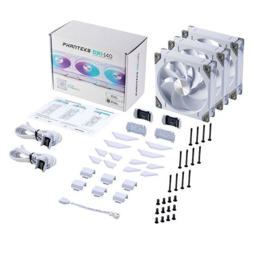 Leventole Phanteks D30-140 PWM D-RGBsono progettate per fornire un flusso d'aria elevato e una pressione statica. Con la profondità di 30 mm, il potente motore PWM idrodinamico e le pale della ventola aerodinamiche, possono essere utilizzati per raffreddare il case con filtri a rete e antipolvere restrittivi o sui radiatori. Inoltre, offrono ampie funzionalità di collegamento a margherita senza ingombro di cavi. Puoi collegarne fino a quattro insieme e collegarli alla scheda madre con un solo cavo per segnali PWM e ARGB.