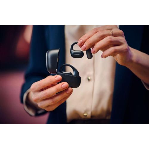 Anche durante il podcast più emozionante, puoi comunque sentire cosa succede intorno a te. Quando fai jogging nel parco, vuoi sentire il campanello della bicicletta. L'RB-F10 è utile anche a casa, ad esempio durante una telefonata importante, quando non vuoi perderti il ??suono del campanello. Poiché l'RB-F10 non ostruisce i canali uditivi, sei sempre informato, anche quando indossi le cuffie.