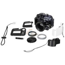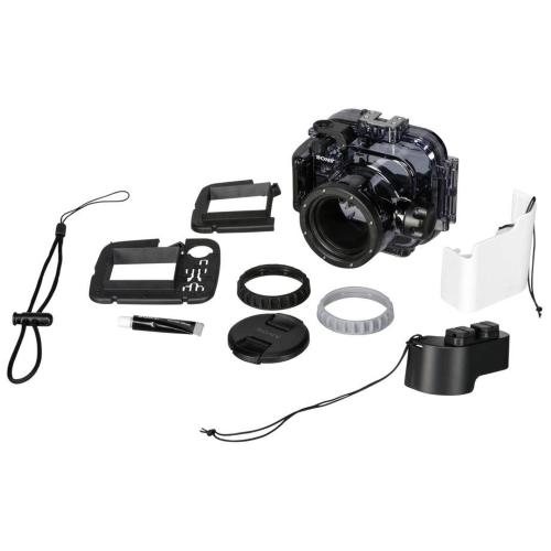 Sony MPK-URX100A Underwater Housing Immergiti con la serie RX100 a 40 m (130 piedi) Immergiti su 40 m (130 piedi) e fai registrazioni impeccabili con la fotocamera digitale di alta qualità della serie RX100 di Cyber-Shot. La telecamera partecipa anche a molte altre attività, come lo snorkeling, una giornata speciale in spiaggia, sport invernali o colpi di neve e pioggia. Sicurezza impermeabile Due sigilli assicurano una doppia resistenza all'acqua - anche se qualcosa viene catturato nel primo sigillo, il secondo sigillo assicura che la telecamera rimanga asciutta. 1: Packaging 2: O-ring Design perfettamente adattato Il design di alta qualità si adatta perfettamente alla forma compatta della serie RX100 e consente anche l'utilizzo del fulmine integrato. Ancora più opzioni L'alloggiamento include una scarpa accessoria a cui è possibile collegare un flash opzionale, un filettatura a vite con tre fori per una staffa opzionale e una maniglia, nonché un vettore da filtro con un diametro di 67 mm per collegare un filtro opzionale o un intento. Funzionamento semplice Il grande trigger e il controller zoom e il feedback tattile sul pulsante di stampa rendono più facile l'uso. Regolazione delle impostazioni della fotocamera tramite la ruota rotante L'allegato dell'alloggiamento è possibile per adattare l'esposizione, l'apertura, il coperchio, la velocità dell'otturatore e altre importanti impostazioni della fotocamera tramite l'anello dell'obiettivo. Dati tecnici: