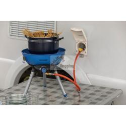 Campingaz Party Grill 400 Caravan ConnectIl barbecue per roulotte Campingaz 400 può essere facilmente convertito da fornello a barbecue ed è dotato di attacco per roulotte. Il coperchio può essere utilizzato anche come wok. Caratteristiche: