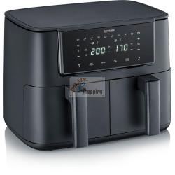 Friggitrice Severin Black Line Dual Air – Friggitrice a doppia camera con touch controlCon due camere di cottura utilizzabili in modo indipendente, prepari piatti diversi contemporaneamente, risparmiando tempo e mantenendo tutto coordinato. Le funzioni di sincronizzazione ti aiutano a finire entrambi i pasti insieme. Dieci programmi preimpostati semplificano la selezione e garantiscono risultati costanti. La pulizia è semplice poiché i cestelli sono rimovibili e lavabili in lavastoviglie. Cucina insieme – servi con facilità Controllo touch e cottura a basso contenuto di grassi Caratteristiche: