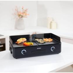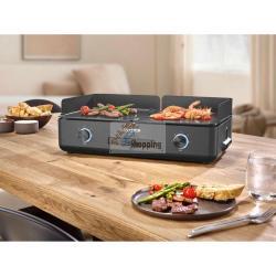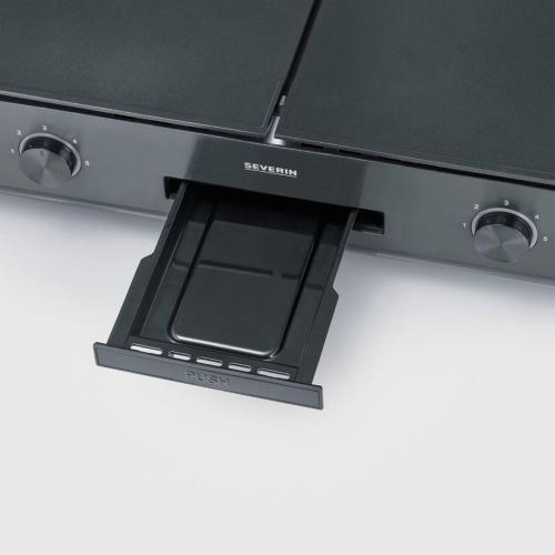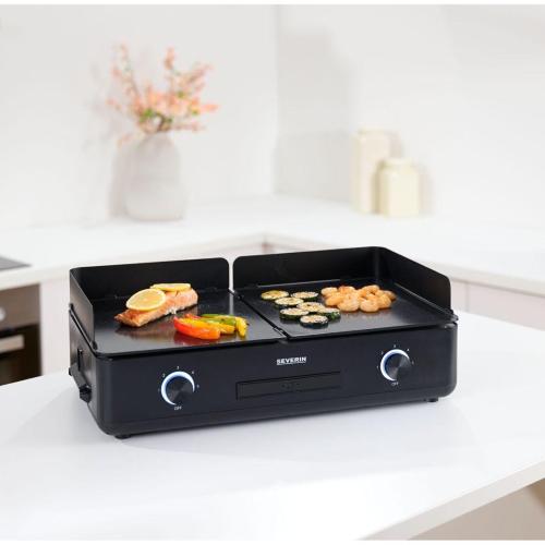 Griglia da tavolo Severin PG 8569 SUAVE PlanchaIl SUAVE PG 8569 garantisce risultati di grigliatura eccezionali ed è perfetto per filetti, frutti di mare e verdure. Offre divertimento alla griglia su due piastre riscaldanti regolabili che raggiungono temperature fino a 240°C. Il grasso in eccesso viene scaricato direttamente nella vaschetta raccogligocce integrata per un facile smaltimento. Le piastre grill possono essere facilmente rimosse e pulite sott'acqua. Grazie al rivestimento in ceramica, l'esperienza di grigliatura è sana e priva di PFAS. SUAVE si caratterizza inoltre per il design sottile e compatto e le pratiche maniglie integrate, che garantiscono la massima comodità sia all'interno che all'esterno. Caratteristiche: