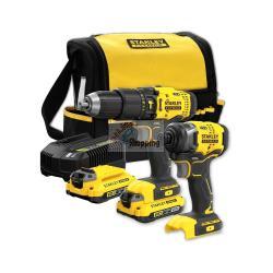 - Trapano a Percussione STANLEY FatMax SFMCD711 - Avvitatore a Impulsi STANLEY FatMax SFMCF800 - 2 Batterie STANLEY FatMax V20 18 V 2,0 Ah - Caricabatteria rapido STANLEY FatMax V20 - Borsa |
