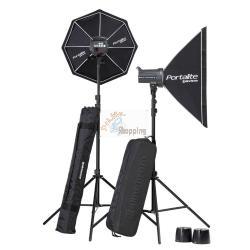Il set D-Lite RX 4 To Go comprende due unità flash con softbox Portalite portatili realizzati con materiali di alta qualità e due supporti per lampada. Il set include anche il trasmettitore EL-Skyport per l'attivazione del flash, l'impostazione della potenza del flash (accensione/spegnimento della luce pilota e impostazioni del canale di gruppo/frequenza).