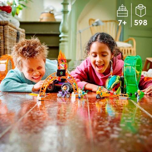 LEGO® City Stuntz Stunt Show Double Loop (60339)Con un'arena per acrobazie con numerose funzioni, 7 minifigure e 2 bici acrobatiche, i bambini possono organizzare gare e spettacoli acrobatici. Caratteristiche: