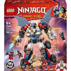 LEGO® 71834 – Ultra Mech di Zane – 1187 pezziIl set LEGO® NINJAGO® "L'Ultra Mech di Zane" offre ai giovani fan dei ninja un'esperienza di costruzione 4 in 1 ricca di azione. Questo set versatile consente ai bambini di costruire un impressionante mech che può essere trasformato in quattro diversi veicoli: un jet, un'auto, un drago e una potente action figure. Fornisce ore di gioco fantasioso incoraggiando la creatività e la destrezza. Divertimento quattro in uno Per vere avventure ninja Funzionalità