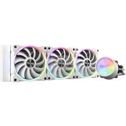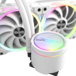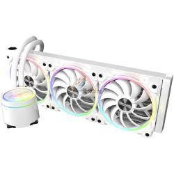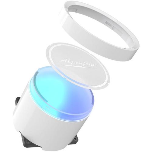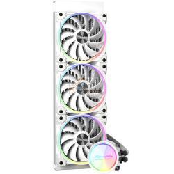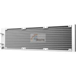 Oltre alle sue elevate prestazioni, ilGlacierwater 360convince anche per il suo aspetto elegante. Tutte le parti sono completamente bianche. L'illuminazione RGB indirizzabile dinamicamentenelle ventole e nell'alloggiamento della pompa è particolarmente ben messa in risalto. L'illuminazione si collega alla scheda madre tramite RGB a 3 pin (5 V) ed è sincronizzata con l'intera configurazione tramite software. In alternativa, può anche essere controllato con il telecomando in dotazione.