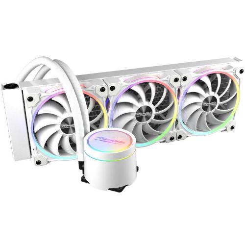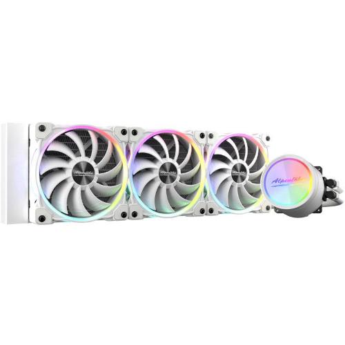 IlGlacierwater 360diAlpenföhnè stato ottimizzato per prestazioni particolarmente elevate e funzionamento silenzioso. Ciò è garantito dalradiatore in alluminio spesso 27 millimetri, dal design accurato dell'unità pompa e dalletre ventole Wing Boost 3 ARGB ad alta velocità da 120 mm.