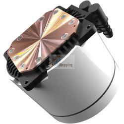Ildesign a doppia camera dell'unità pompariduce le emissioni di rumore e aumenta inoltre le prestazioni e la durata. La base in rame è dotata dimicrocanali di ampia area, che garantiscono un rapido trasferimento di calore al liquido di raffreddamento. La pompa funziona a una velocità di 2.550 giri/min, rendendola ideale per il raffreddamento dei processori overclockati. Raggiunge unlivello di rumore massimo di soli 17,8 dB(A).