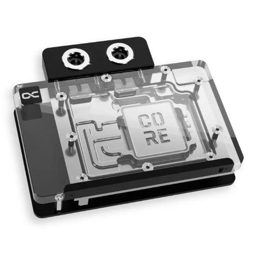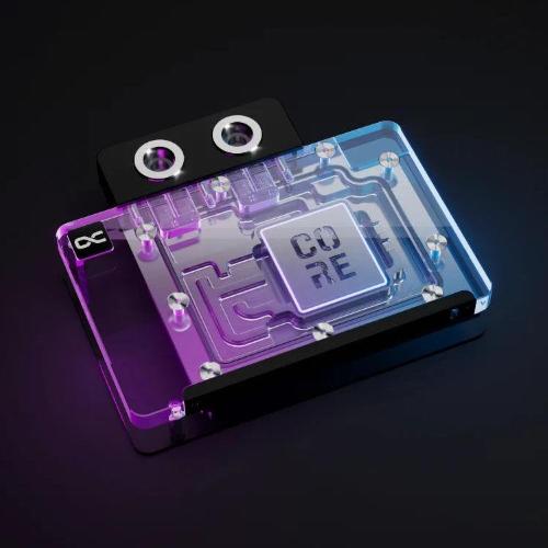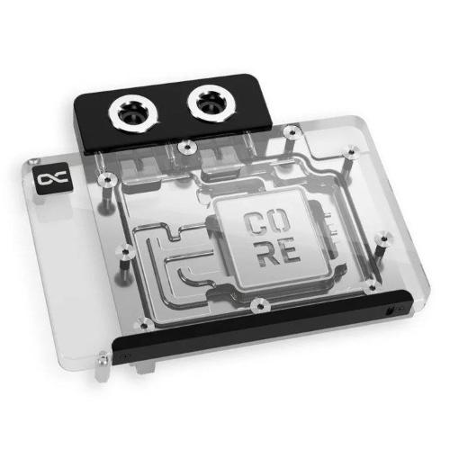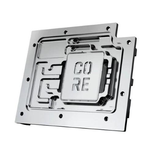 La superficie trasparente non solo consente di vedere lo speciale stemma e lo stile CORE, ma lascia anche trasparire i LED ARGB integrati. In questo modo, puoi personalizzare facilmente il blocco ad acqua in modo che corrisponda alla combinazione di colori del tuo PC da gioco.