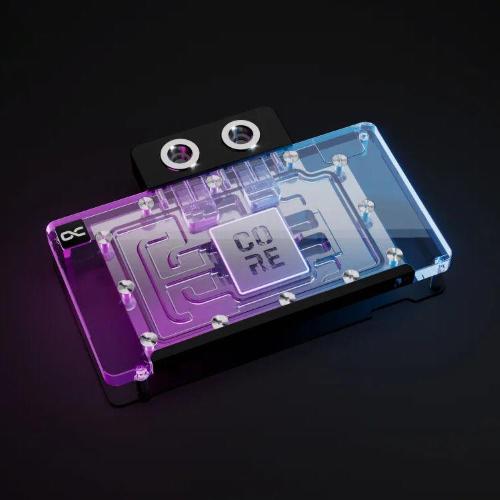 La superficie trasparente non solo consente di vedere lo speciale stemma e lo stile CORE, ma lascia anche trasparire i LED ARGB integrati. In questo modo, puoi personalizzare facilmente il blocco ad acqua in modo che corrisponda alla combinazione di colori del tuo PC da gioco.