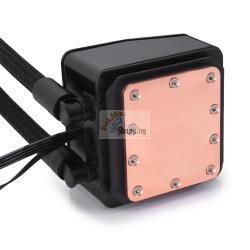 L'alloggiamento della pompa è dotato di 12 LED RGB da 5 V indirizzabili digitalmente, che mostrano perfettamente questo sistema di raffreddamento ad acqua. Il design minimalista del dispositivo di raffreddamento si integra perfettamente nella maggior parte dei build. L'estetica è completata da tubi flessibili in FEP con maniche. I tubi lunghi 35 cm sono molto flessibili e possono essere instradati facilmente.