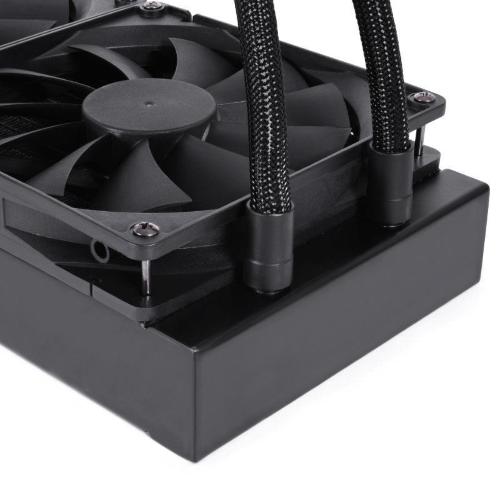 I tubi FEP sono lunghi 40 cm, dotati di maniche e molto flessibili. I collegamenti girevoli a 360° al refrigeratore e al radiatore sono installati in modo permanente e non possono essere sostituiti. Tuttavia, la combinazione di tubi e connettori consente un posizionamento molto variabile dell'AiO anche nel case del PC più stretto.