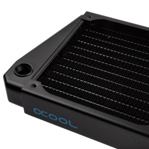 La spaziatura delle alette è sempre un fattore importante nella progettazione del radiatore. La nuova serie di Alphacool ha un design ad alette che le consente di funzionare estremamente bene anche con ventole a rotazione lenta e a velocità media. Ciò non è solo piacevole perché evita rumori inutili; significa anche che la scelta delle ventole che possono essere utilizzate con questi radiatori non è limitata.