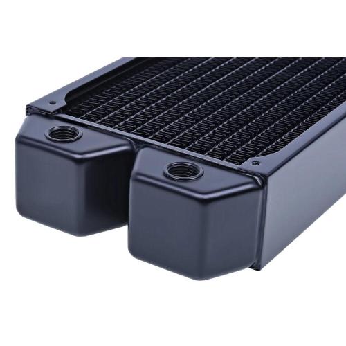 Ildesign nero con alette neresi adatta perfettamente a diversi modelli di PC. Grazie aisei attacchi G1/4il radiatore può essere facilmente integrato nel vostro sistema di raffreddamento ad acqua. Una connessione aggiuntiva G1/4" funge da porta di riempimento-scarico per rendere il riempimento e lo svuotamento dei circuiti personalizzati il più semplice possibile.
