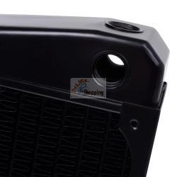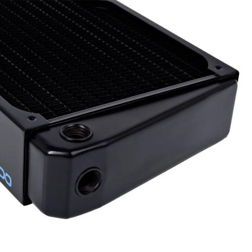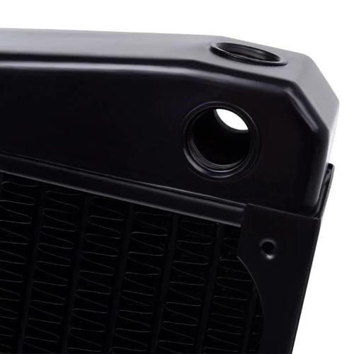Ildesign nero con alette neresi integra perfettamente in diversi PC. Grazie aidue attacchi G1/4il radiatore può essere facilmente integrato nel vostro sistema di raffreddamento ad acqua. Un ulteriore collegamento G1/4" funge da porta di riempimento-scarico, rendendo il riempimento e lo svuotamento dei circuiti personalizzati il più semplice possibile.