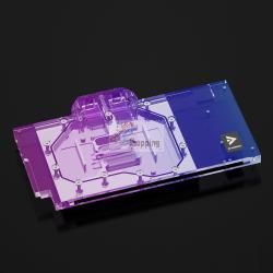 Il coperchio è realizzato inacrilico trasparentecon illuminazione RGB integrata. La piastra posteriore bianca è realizzata in alluminio, che aiuta anche a dissipare il calore.I raccordi G1/4 polliciconsentono l'integrazione nel sistema di raffreddamento ad acqua.