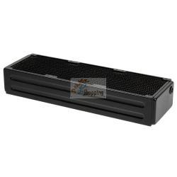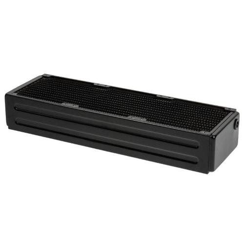 Quando acquisti uno scambiatore di calore G2, dovresti considerare anche l'altezza di 65 mm oltre alla lunghezza; in questo modello triplo è 380 mm - più gli attacchi, che vengono montati direttamente sui lati anteriori; ciascuno di essi ha una filettatura G1/4 di pollice. Sono incluse le viti necessarie per montare tre ventole e fissarle nell'alloggiamento, così come tre telai di disaccoppiamento per l'attenuazione delle vibrazioni.